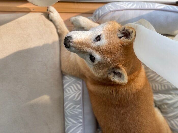 一瞬トイレに行ったすきに、寝ていた場所をしれっと奪われる——。4才の柴犬・ももちゃんの“あるある”な行動を紹介します。
