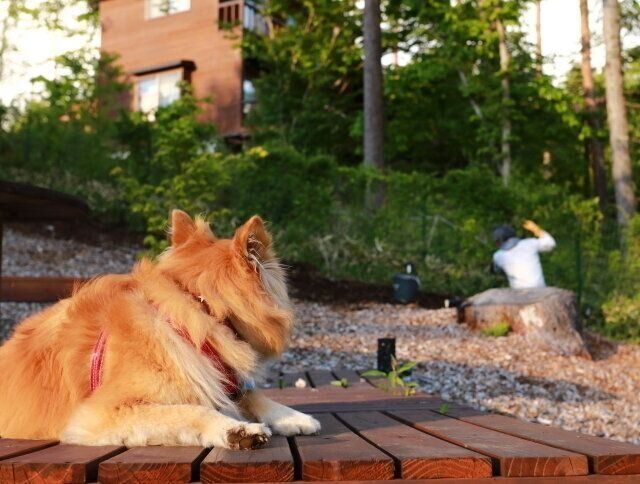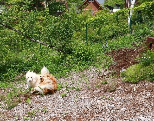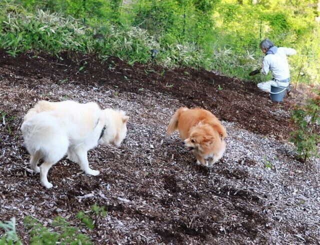 大吉と福助が自由に走り回れる快適なドッグランを維持するために。彼らはいつも横で遊んでいて、感謝している様子はまったくないが、別にいいんだ。