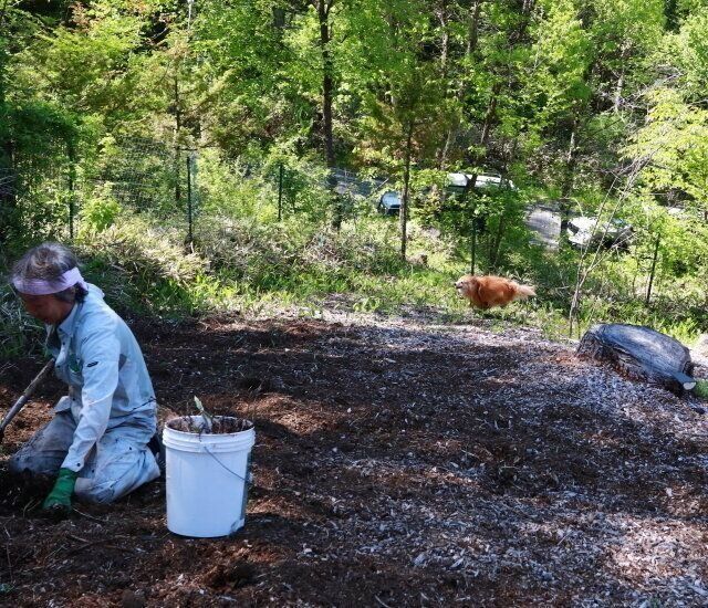 これをこつこつと抜いていくのはかなりの重労働で、両腕は筋肉痛になるし、立ったりしゃがんだりで腰にくる。そんなこと1日やってられないし、ほかにもやらなければいけないことはある。だから毎朝1時間と決めて、連日クマザサの根と格闘している。1時間くらいだと、3平米くらいしかできない。本当にそれくらい密接に繋がっているのだ。