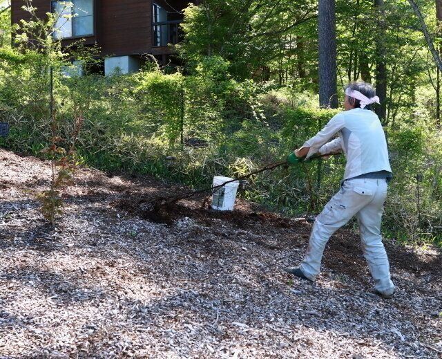 このところ毎日、山の家に作ったドッグランの雑草抜きをしている。これまで毎年、初夏になると草刈機で刈りまくっていたが、翌年にはまた生えてくる。中でもタンポポとクマザサはどんどん増えていく。