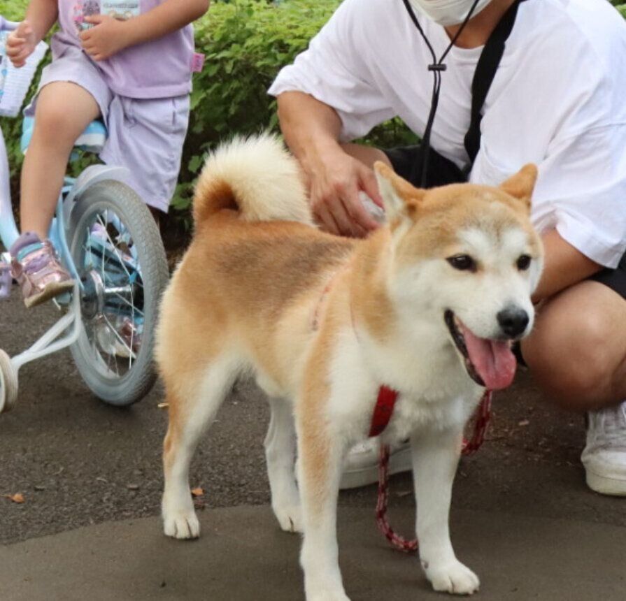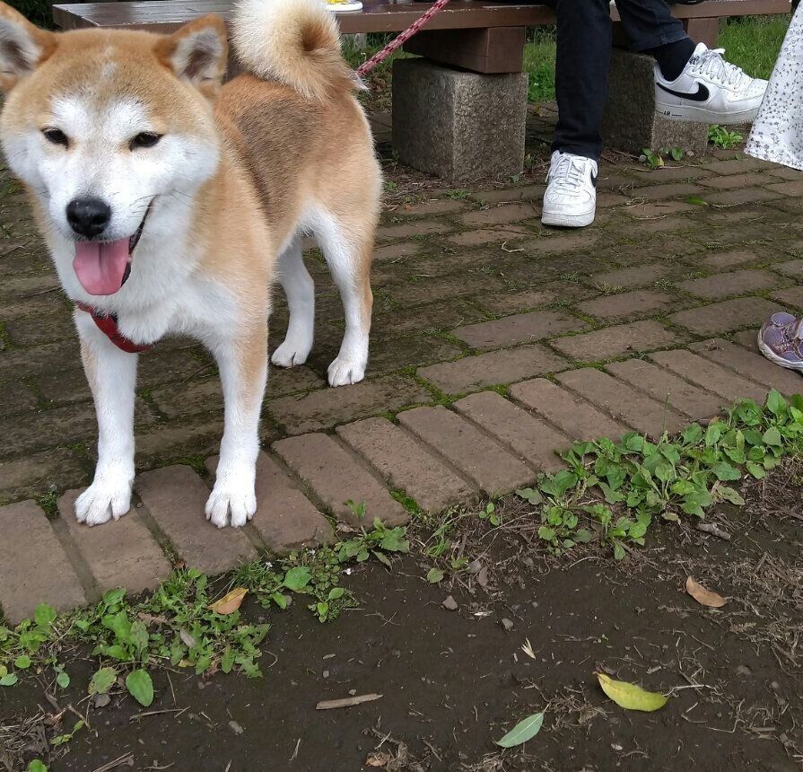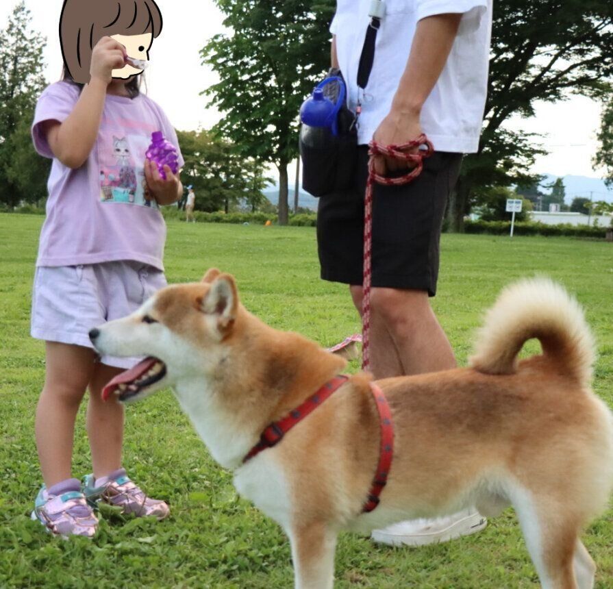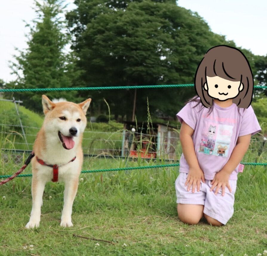 するとタロさんと娘が柴距離で並ぶ、ぎこちなさ満点の写真が撮れました。