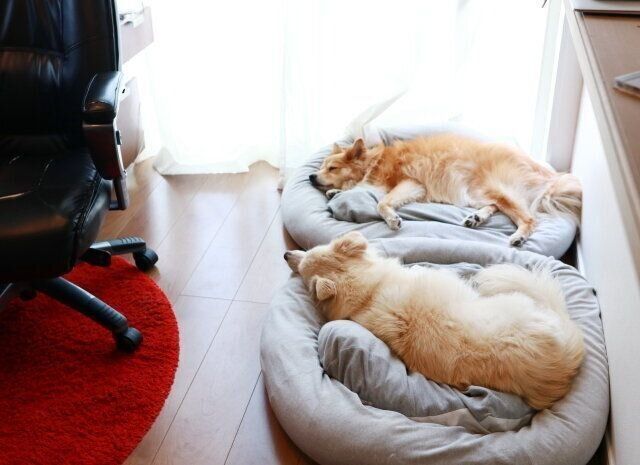 犬と飼い主との距離感は家庭によってそれぞれ違うが、わが家はわりとさっぱりしている方だと思う。大吉と福助は基本、見送りも出迎えもしないし、私が1階の仕事部屋にいるときもずっと3階の寝室で昼寝していることもある(特に冬)。夏場は涼しい仕事部屋に来ることが多くなるが、特にかまってオーラもないし、ただ昼寝している。