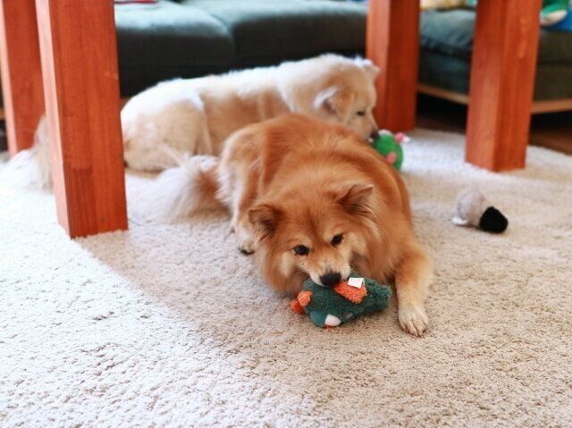 朝、散歩に行くときも先に起きるのは私だし、玄関から「お前らー、散歩行くぞー!」と呼んで初めてだるそうに降りてくる。愛情たっぷりの手作りゴハンもがっつきはせず、ちょこちょこ遊び食いして最終的に残すこともあるし、「これじゃない」という顔でそっぽを向かれることもある。さっぱりを通り越して素っ気ないくらいだが、それはそれで信頼関係がある。