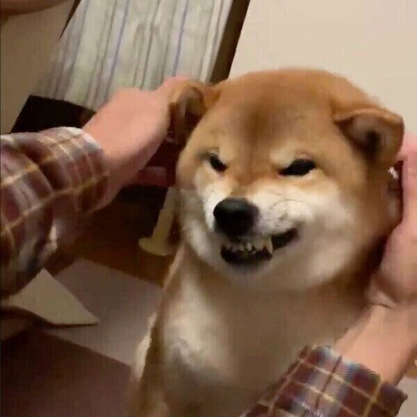 今まで穏やかな表情だったのが嘘のように、歯を剥き出してムキ顔に!