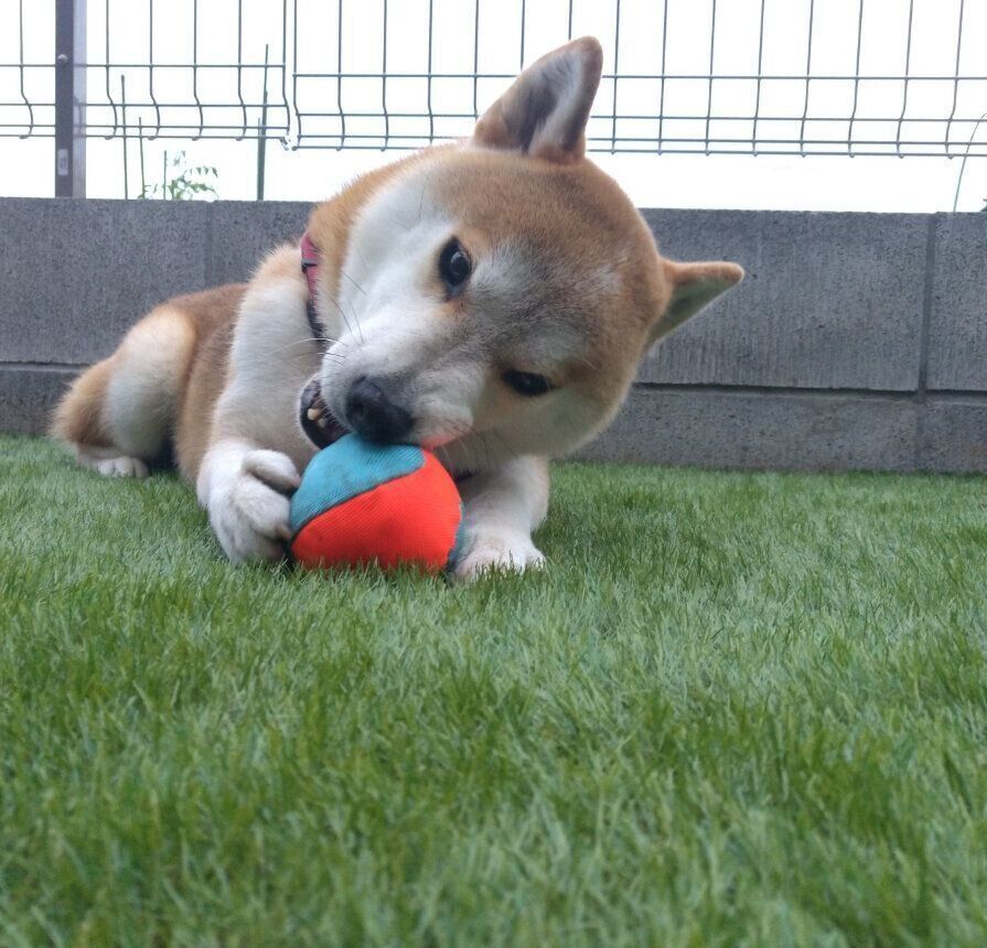 ずっと出たかったお庭に出た途端、芝にダイブするタロさん。嬉しそうな後ろ姿です。