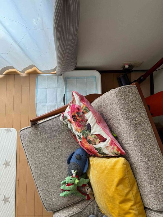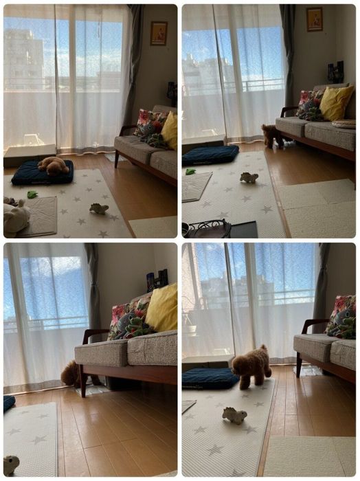 わが家に来て2カ月目に入った頃もまだ失敗続きで、トイレシーツにしてくれることが少なかったのですが、「次はもう少し(トイレの)近くでできるかな?」くらいの緩い期待で見守っていました。そして、テコが覚えるだけでなく、トイレの時間や行動パターン、失敗した場所など、私の方も覚えていきました(私もトレーニングです)。