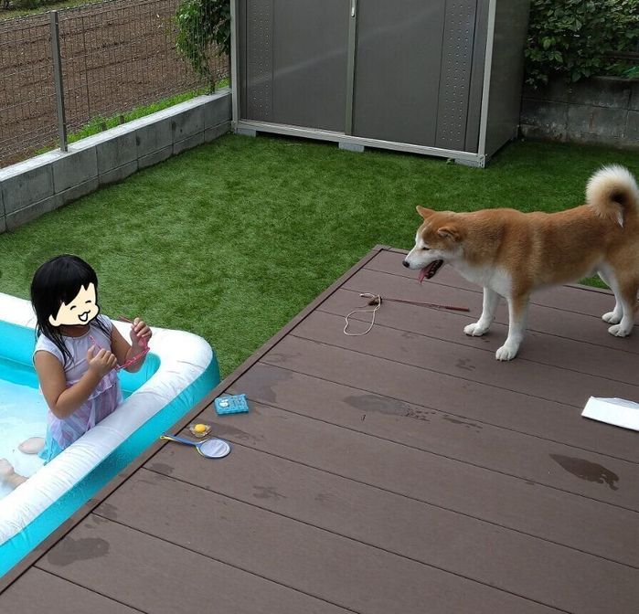 「気になる、けど!」プールを前に葛藤が止まらない柴犬タロさん|連載「モフモフ柴とプニプニ娘」第186話