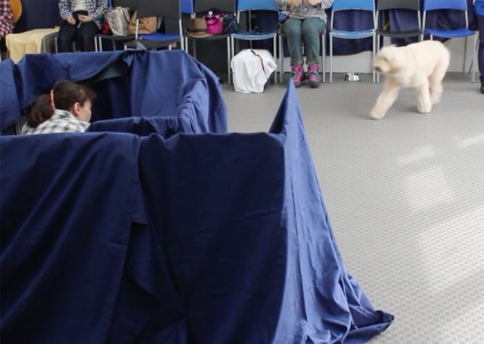 飼い主が隠れて犬を笛で呼び戻すのです。最初はソファの後ろに隠れたり、隣の部屋のドアの影に隠れたり。それができたら、隣の部屋もクローゼットに隠れたり、さらには……と家のさまざまな場所から呼び戻す練習をします。