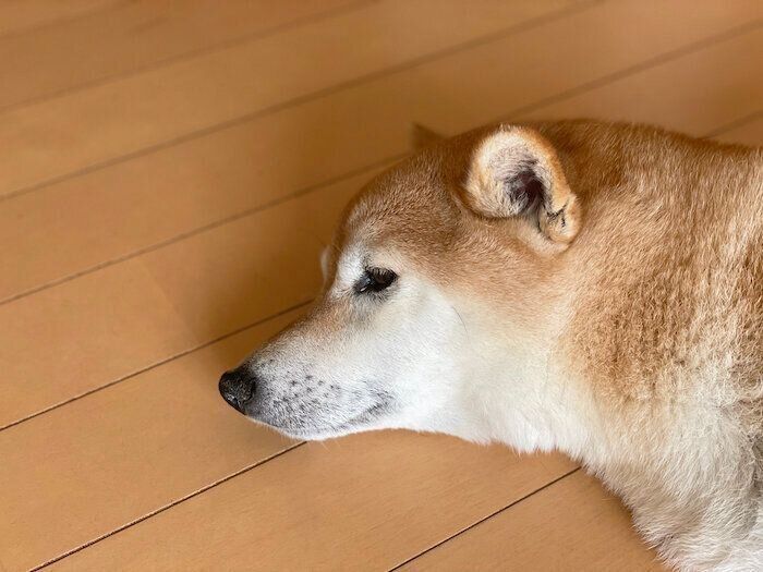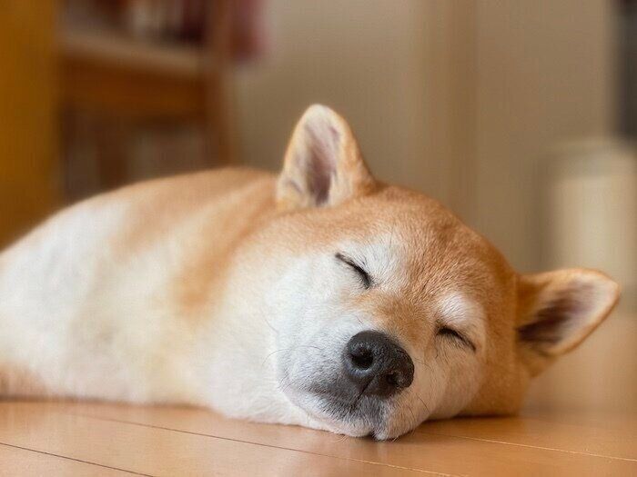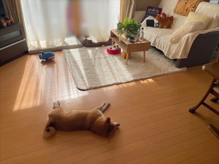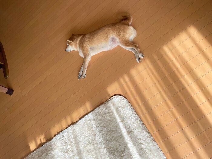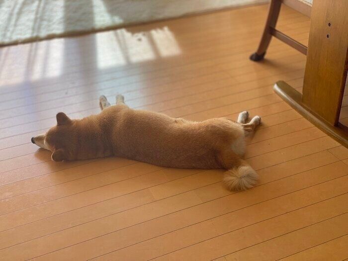 「落ちてる…」飼い主が外出から戻ると落ちていた柴犬マロたん、すやすやと眠る