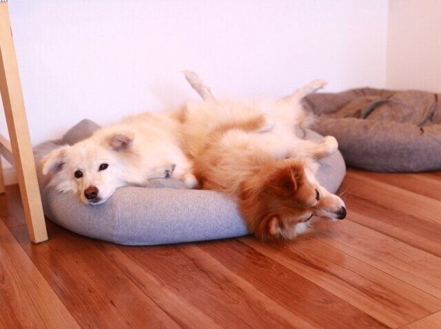いっぽう、大人になってから初めての犬「富士丸」、そして現在の大吉と福助は家にあげるのはもちろん、ベッドでもソファーでもどこでも自由に暮らしている(特に富士丸のころは狭い1DKだったので文字通り肩を寄せ合うように暮らしていた)。