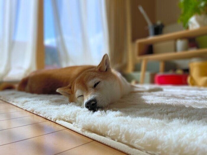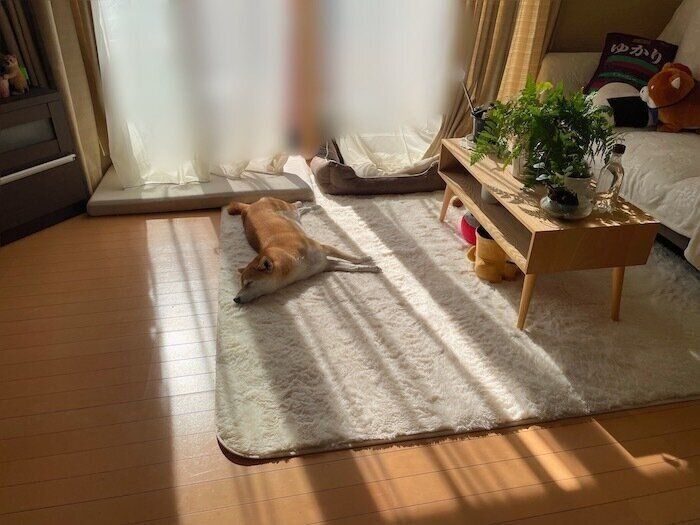 その後は、全身でポカポカぬくぬくを満喫していました。お散歩に出発する時間が遅くなってしまいますが、あと2ヶ月で12歳になるシニアマロたんには気温が上がってから家を出るほうがいいのかも。