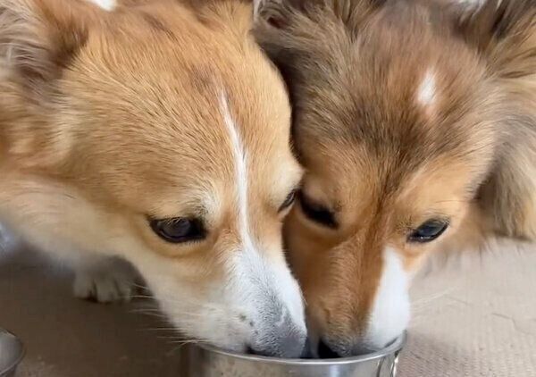 (写真奥から)うりちゃん、姉犬・せこむちゃん