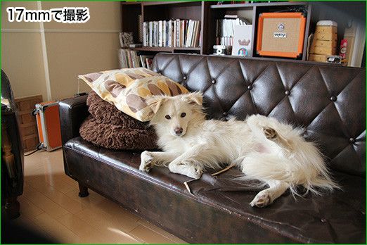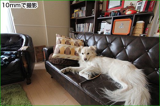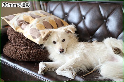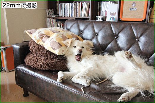 ではどんなレンズを選べばいいのか。犬や猫を主に撮る場合なら、単純にその被写体の大きさによると思う。たとえば室内で大型犬を撮影する場合、標準レンズだと画角が限られているし、そんなに離れて撮れないので顔のアップばかりになってしまう。なので体全体を写したいときは広角レンズのほうが向いている。