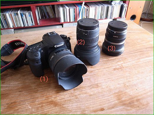 まず、レンズには大きく分けて「標準」「広角」「望遠」の3種類がある。こまかい説明は抜きにして、ひとまず最初に紹介した私の使用機材から本体とレンズだけピックアップしてみた。今持っているのは、この3つ。