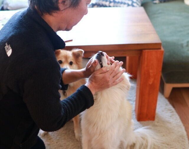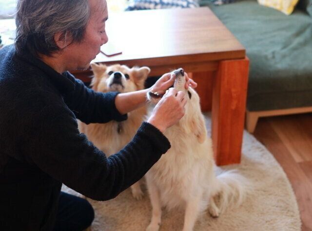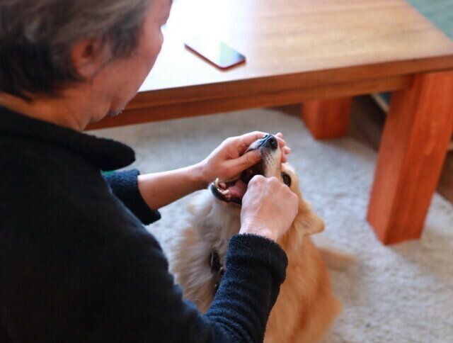 大吉と福助の場合は噛まないので大丈夫ですが、口を触られるのをいやがる犬の場合は噛まれる可能性が高いので注意しましょう。そういう場合は使えない方法です。