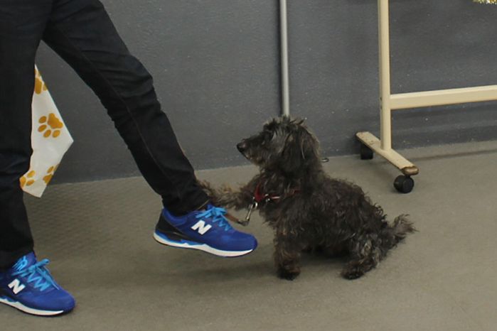 初級クラスは、全7回。オスワリやフセでのマテ、引っ張らないお散歩、オイデなどコンパニオン・ドッグに必要な基本的なトレーニング項目の他、オテやゴロン(寝転んでおなかを見せる)などのトリックを何かひとつ教えてもらう、ということもカリキュラムに入れ込んでいます。