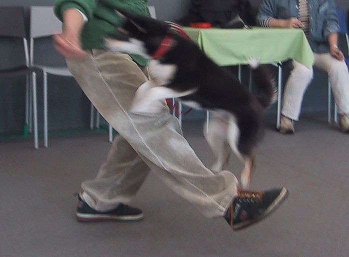 初期のクラスにおけるトリックを教える意味は、そうしたことを飼い主に身をもって理解してもらうためだった、ということです。
