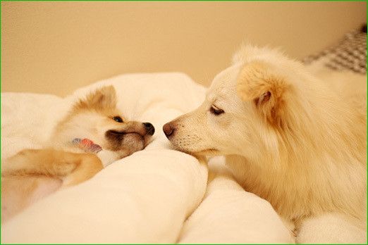 お迎え翌日、先住犬とぎこちない対面を果たしたハスキー子犬のごまちゃん。臆病と言われたものの実際は勝ち気な性格。1才の今も勝ち気だけれど、「お兄ちゃん大好き!」な一面が可愛いコに成長しました。