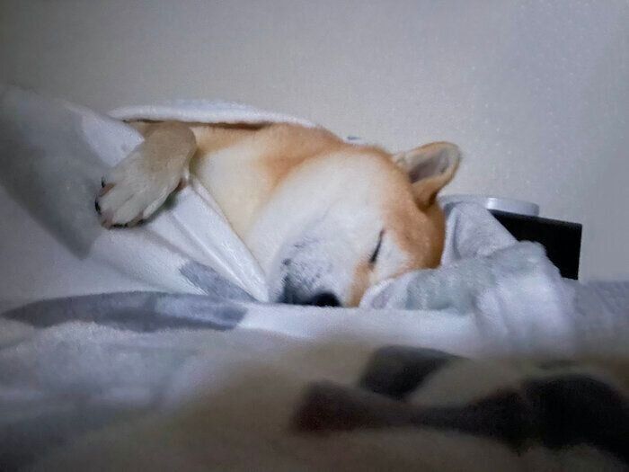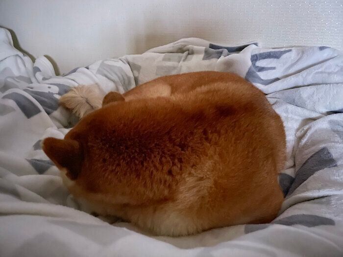 寝ていても起きていてもカワイイ…冷え込む夜、”柴ベーグル”みたいに丸まって眠るマロたんの様子とは