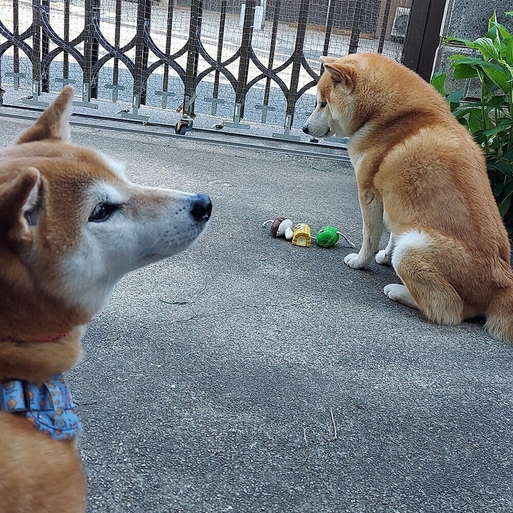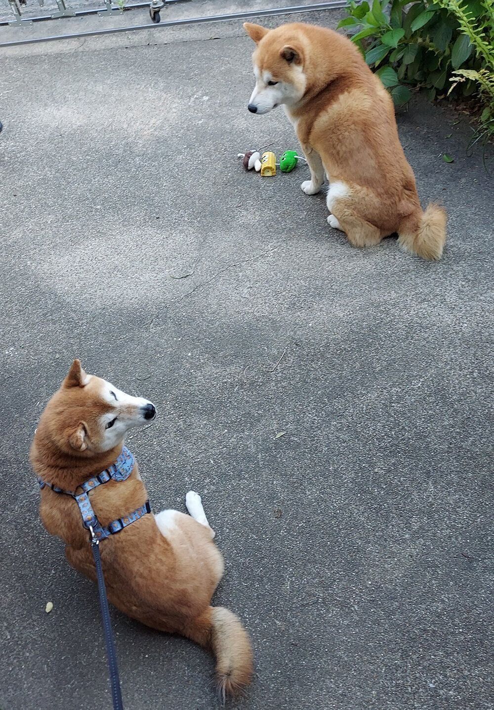 友だちワンコの近づくなオーラに負けちゃったかな?