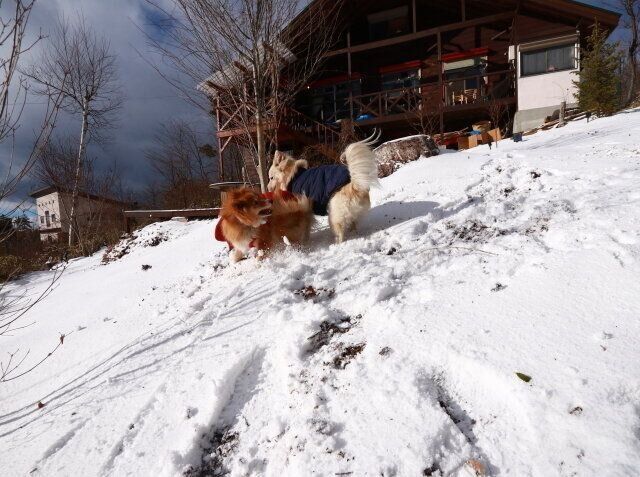 先々週、八ヶ岳の山の家で過ごしているときに2日連続で雪が降った。「丸山の森」あたりは雪国ではないので、なかなか珍しいことだ。10センチ未満の積雪だったが、大福にとっては今年の初雪になる。朝の散歩の後、少しドッグランで遊んで家に入ったが、しばらくしたら「外へ行こうよ!」と猛アピールしてくる。