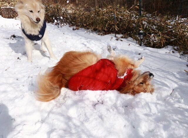 そんなやつが、富士丸が喜ぶからと雪山へ行くようになり、今では「雪、積もらないかなぁ」とちょっと期待したりする。そして雪が積もれば大福の雪遊びに付き合っている。そろそろ家の中に入ろうよと思いつつ。でも無邪気に雪遊びしている彼らを見ていると、愛おしくてたまらない。