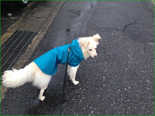 大吉は後ろ足まで巻くタイプのレインコートだと気にして歩きたがらなかったが、これだと足に違和感がないのでふつうに歩く。福ちゃんは、初めてのレインコートなのでほかのレインコートは知らないがまったく問題なく歩いていた。