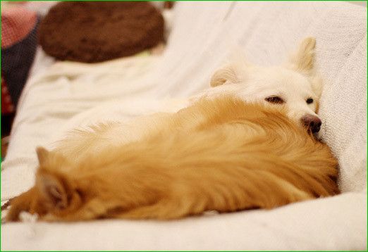 「おやつ」を知る先住犬と、まだ知らなかった新入り子犬。キラキラ笑顔と真顔の対比が話題に。成長とともに変化する2頭の関係性を紹介します。