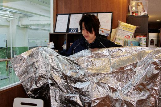 荒井:これで風よけにもなるし、愛犬といっしょに温まることができるんです。最悪のケースですが、外に犬をつなぐときもケージの上にかぶせてあげるだけでずいぶん違うと思います。