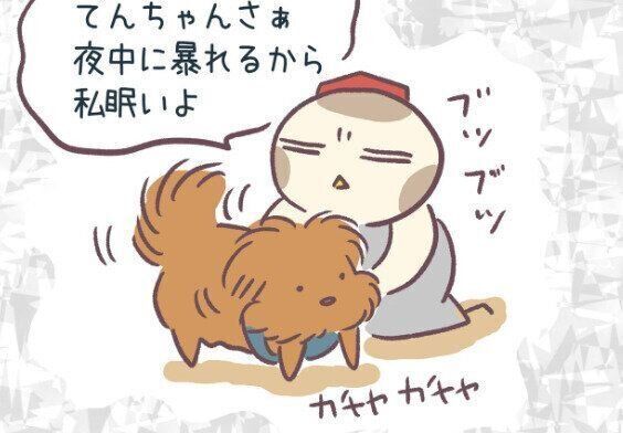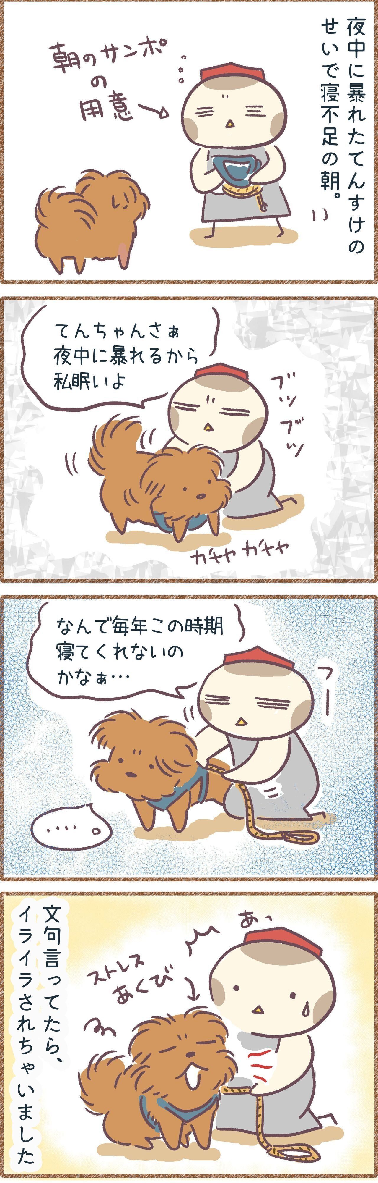 この時期毎年そうなんですが、てんすけが深夜になると、バタバタと暴れて寝不足になっております。