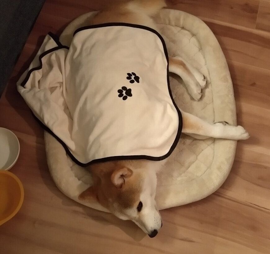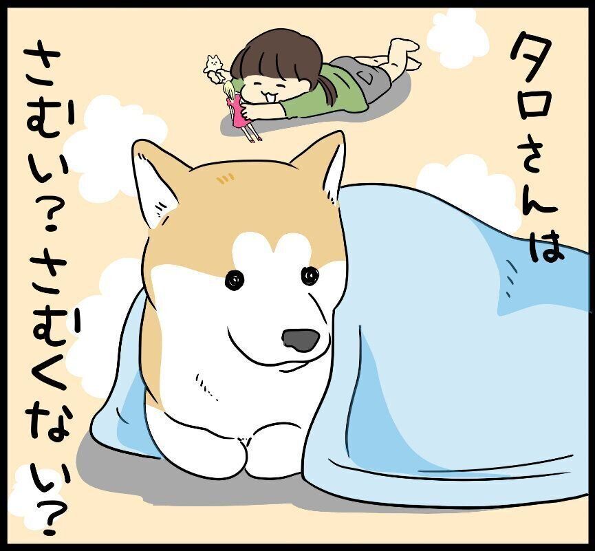 先日布団を片付けていると、タロさんが布団を見るなりすぐに上で丸まっていたので、タロさんは寒がっている可能性があります。
