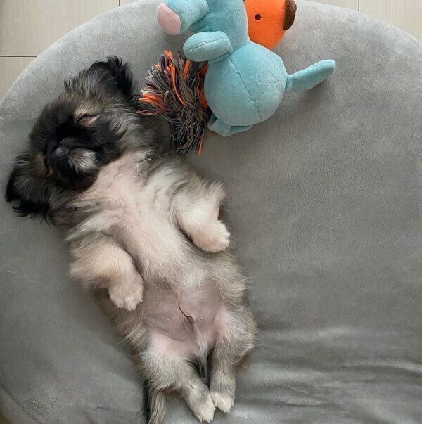 @mobb_pekingeseさんの愛犬・モブくん(取材当時2才)。飼い主さんがお風呂に入っていると、