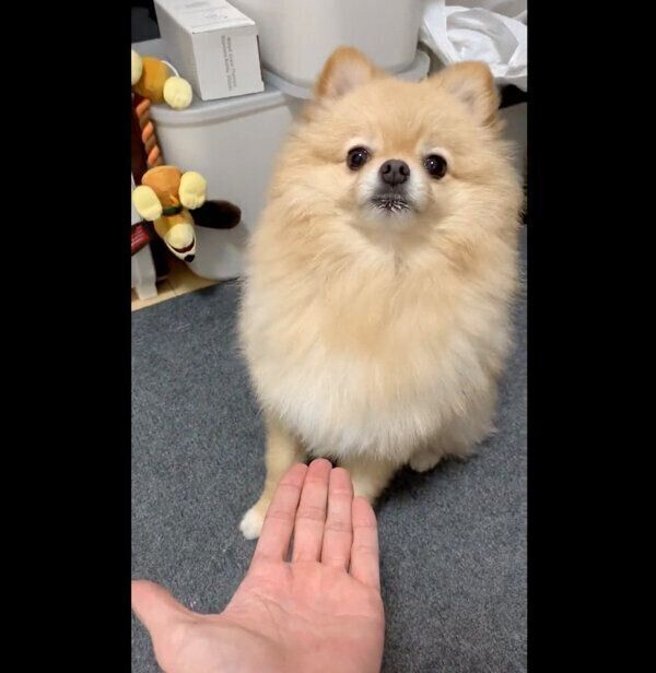 外に洗濯物を干すとき、ポメくんは窓際に来ることが多いものの、ちゃんとお座りをして見つめてくれたのは今回が初めてだったのだとか。