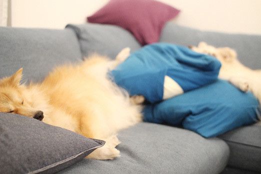 掃除機の音に驚き、先住ハスキーの後ろへ隠れたコーギー子犬。お迎えから9カ月、生後11カ月になった今では、大きい音が苦手な時に駆け寄ったり、兄犬に「一緒に遊ぼう」と誘われたり。3頭の関係の変化を飼い主さんに取材しました。