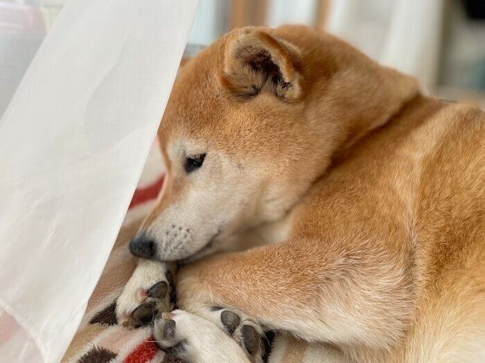 一瞬トイレに行ったすきに、寝ていた場所をしれっと奪われる——。4才の柴犬・ももちゃんの“あるある”な行動を紹介します。