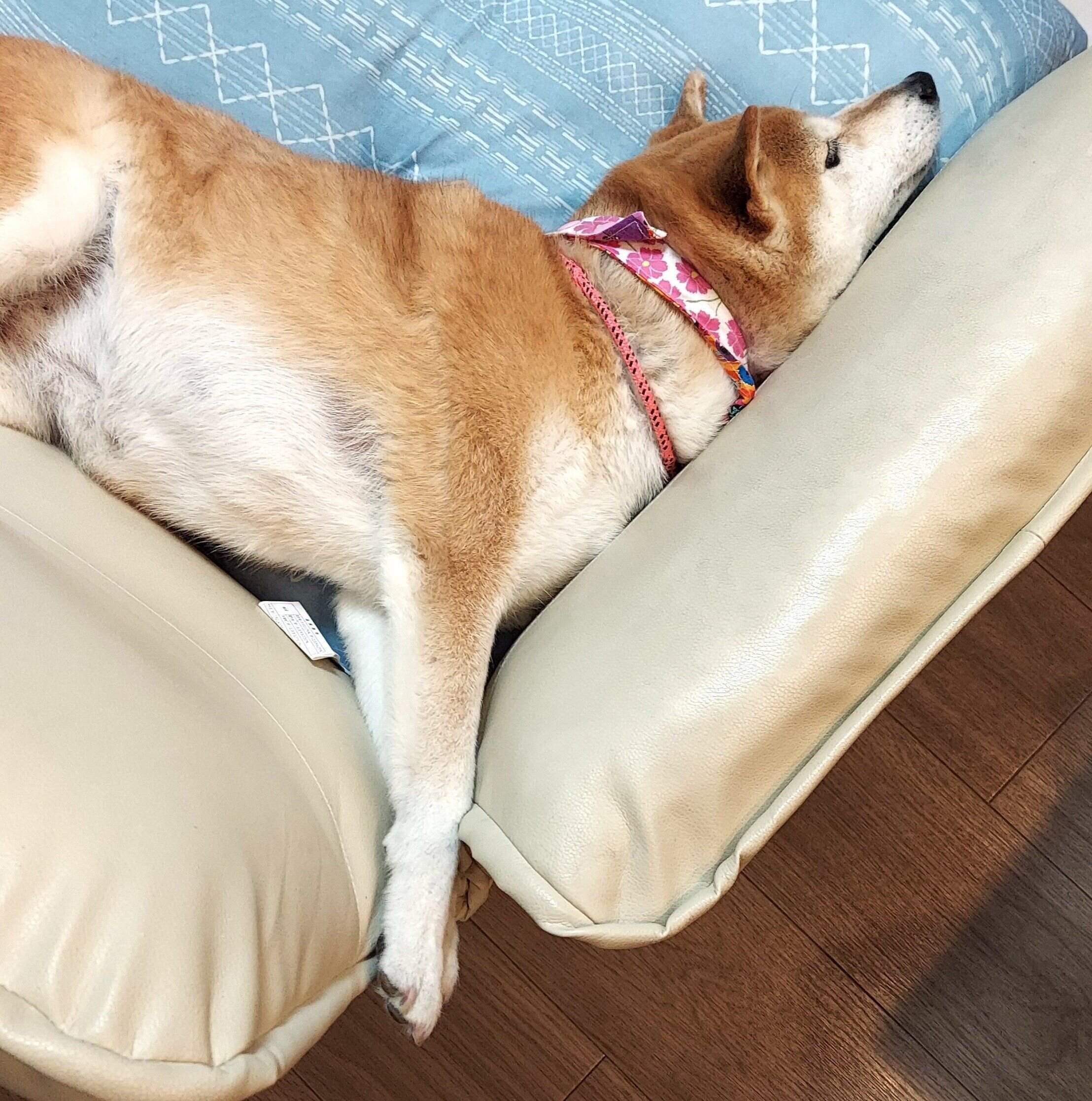 ソファですうすうよく寝ているな〜と思って見ていると、むくっと目を覚ました柴犬さん。
