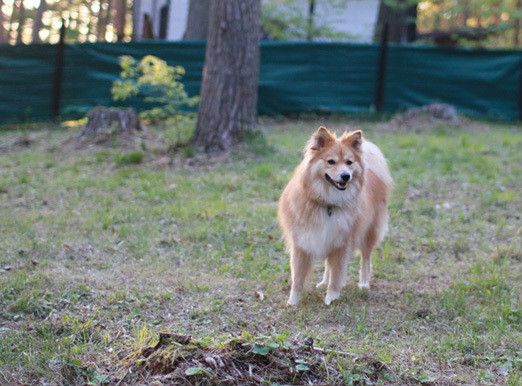 散歩デビューの日、ハーネスが大きくて“むちむち”に見えたポメラニアンの子犬・たわしちゃん。初めての散歩で見せた意外な一面や、2才目前の現在の“たぬき顔”な成長ぶりを紹介します。