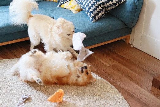 「おやつ」を知る先住犬と、まだ知らなかった新入り子犬。キラキラ笑顔と真顔の対比が話題に。成長とともに変化する2頭の関係性を紹介します。