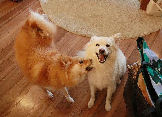 食後にヘソ天でくつろぐ大胆なポメラニアンの子犬・ダイヤちゃん。「肝が据わっているコになりそう」と感じた飼い主さんの予感通り、兄犬と仲良くスクスク成長中です。