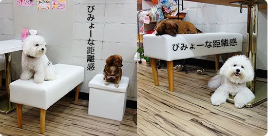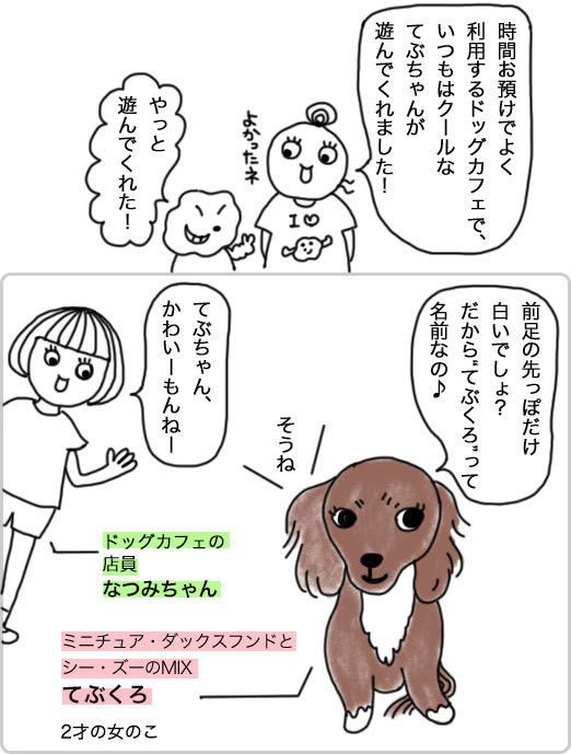 ドッグカフェでお預かり中のお客犬なのに、看板犬だと勘違いをされていることが多々。てぶくろが店にいるか確認の入電の後、来店されるお客がいるとか。