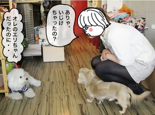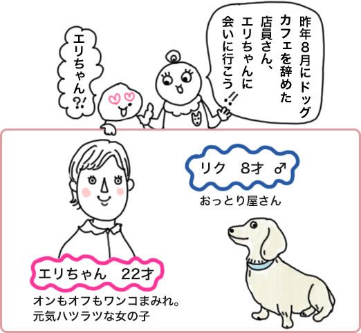 リクが4才のころから、学校でドッグトレーニングを学ぶエリちゃんに急に厳しくされ戸惑うも、エリちゃんに呼ばれても聞こえないフリをする、という術を身につけ難を逃れている。