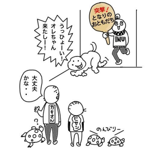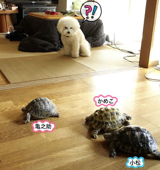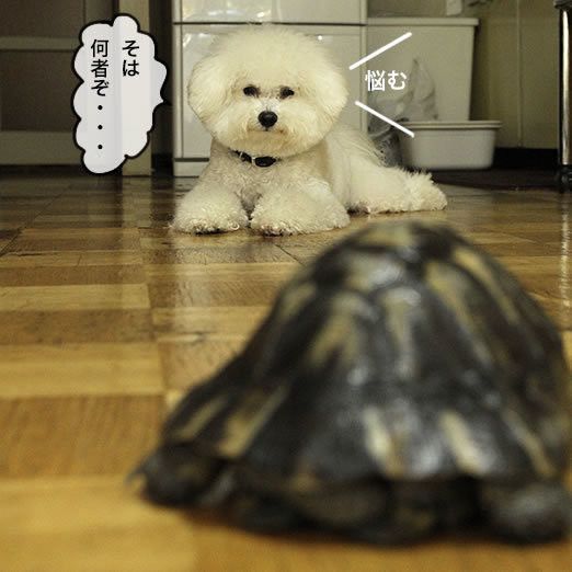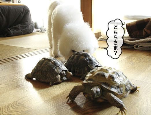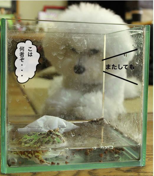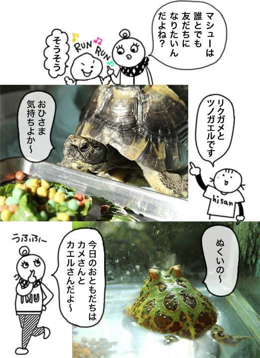 リクガメとカエルとの対面は、落ち着くのを待ってからに。