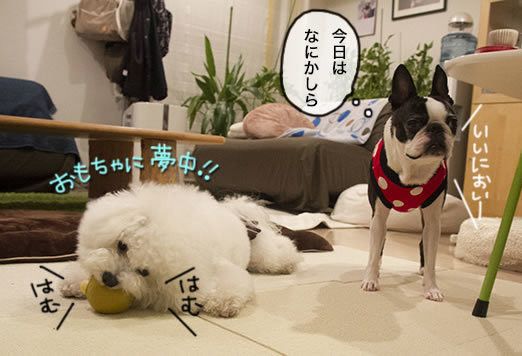 大型犬と同じくらい激しい小型犬が飼いたい、ということで迎え入れられた。