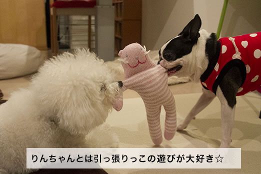 おもちゃの引っ張りっこは、子犬時代のマシューに