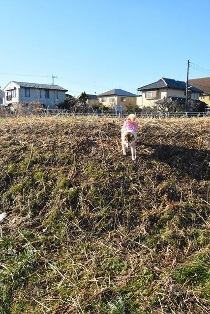 *かぼちゃんは普段のお散歩やドッグランでは、全く走りません。この土手の散歩道でのみ、スイッチが入って走ってくれます。私が追いかけられる程度の速さですから、可愛いテケテケ走りですが、いつもスローなかぼちゃんのアクティブ姿が見られることが、とっても嬉しいのです。