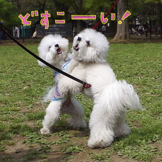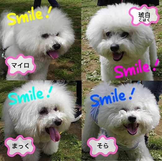ピクニック中、ビション・フリーゼがいっぱいいるから