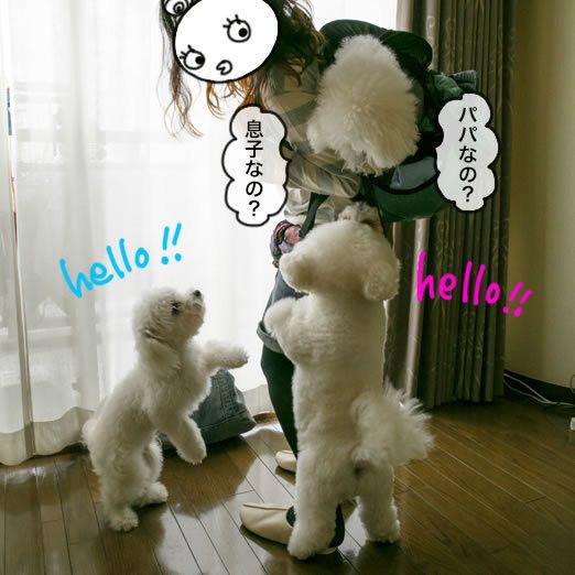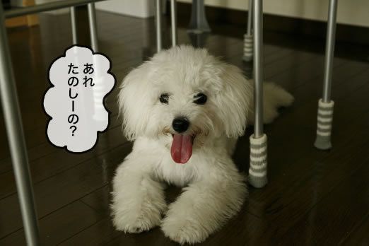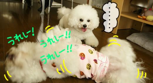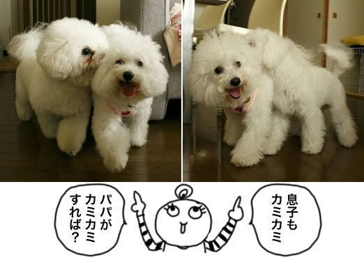 白いワンコが大騒ぎで団子みたいだこりゃ!