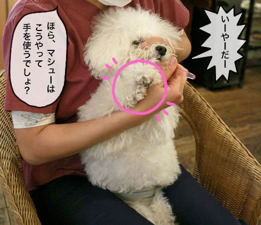 そうなの。うまいこと前足を使いやがって、