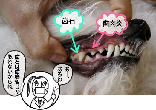 しかも、歯石が付いている歯の歯茎部分が赤くなっていて、