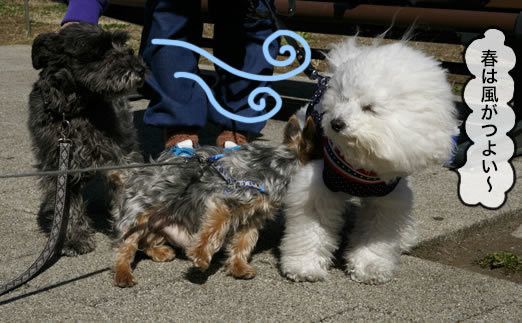 春の陽気でゴキゲン散歩「マシューとマルモともだち100わんできるかな」